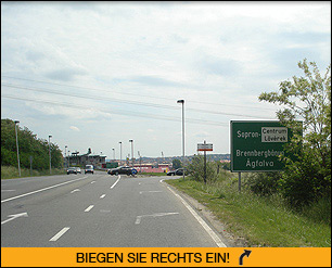 • Ca. 5 km nach dem Grenzübertritt biegen Sie bei der ersten Möglichkeit rechts, Richtung Stadtzentrum, ab.